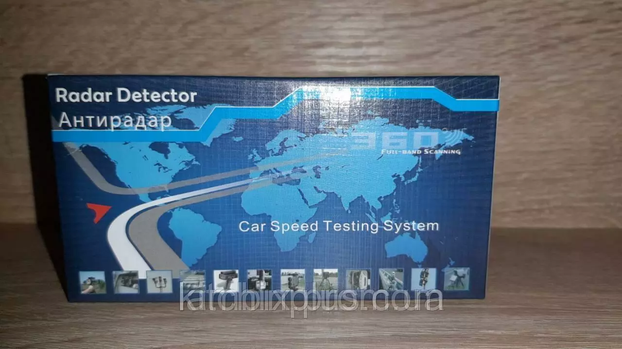 Антирадар Radar Detectors 360 full-band scanning представляет собой портативный лазерный радар-детектор, который может использоваться в любом автомобиле. Оповещает звуком и светом приближение камер фиксаций нарушения в радиусе до трех километров с углом обзора 360°. Радар может функционировать в любых Х-, К- и Ка-диапазонах.