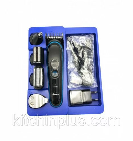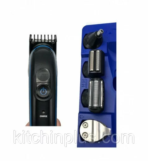 В этот комплект входит машинка со съемными насадками для стрижки волос, бритья и триммер для носа и ушей.