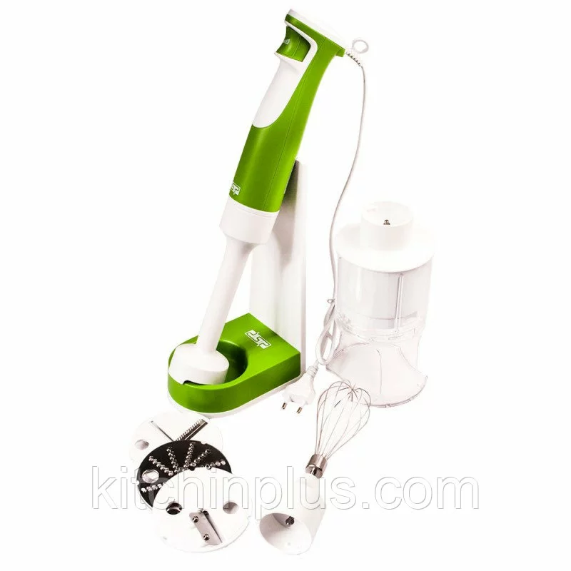 Блендер DSP относится к ручному (погружному) типу. Во время работы, Вы погружаете рабочую часть блендера (ножку блендера с ножом или венчик) в емкость с продуктами. Он портативен и легко поддается манипуляциям. Погружной блендер миниатюрнее и легче ручного миксера, а также функциональнее своих стационарных аналогов.