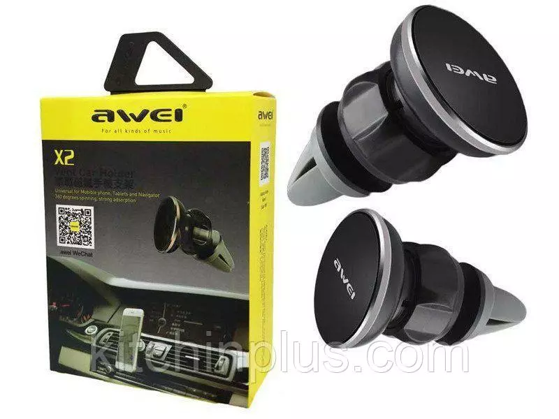 Awei X2 Magnetic Air Car Holder компактный, маленький, магнитный держатель для мобильных телефонов на вентиляционную решетку. Данная модель отличается от обычных магнитных держателей наличием движущей части позволяющей расположить устройство под более удобным углом относительно водителя.