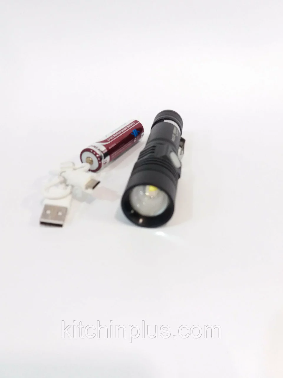 комплектация:  фонарик,аккумулятор li-ion 18650,USB  кабель,