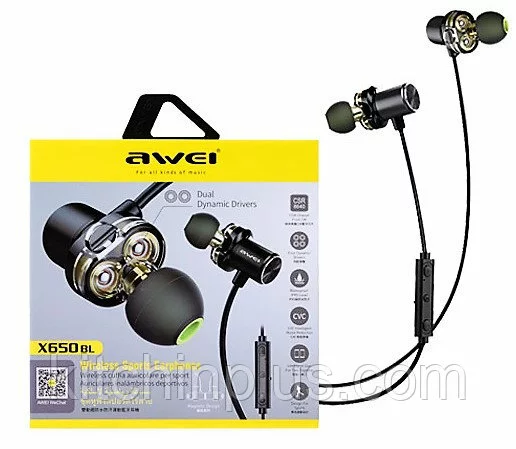 Беспроводные bluetooth-наушники AWEI X650BL с двойными