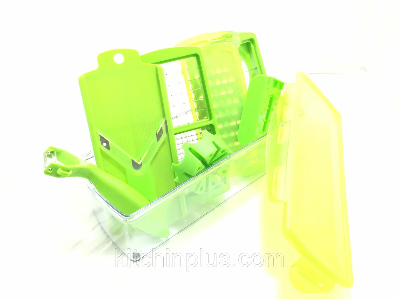 С помощью данного приспособления и насадок,которые входят в комплект можно быстро измельчить любые овощи и фрукты,для салатов,для сервировки стола.Она незаменима для ваших вкусных шедевров