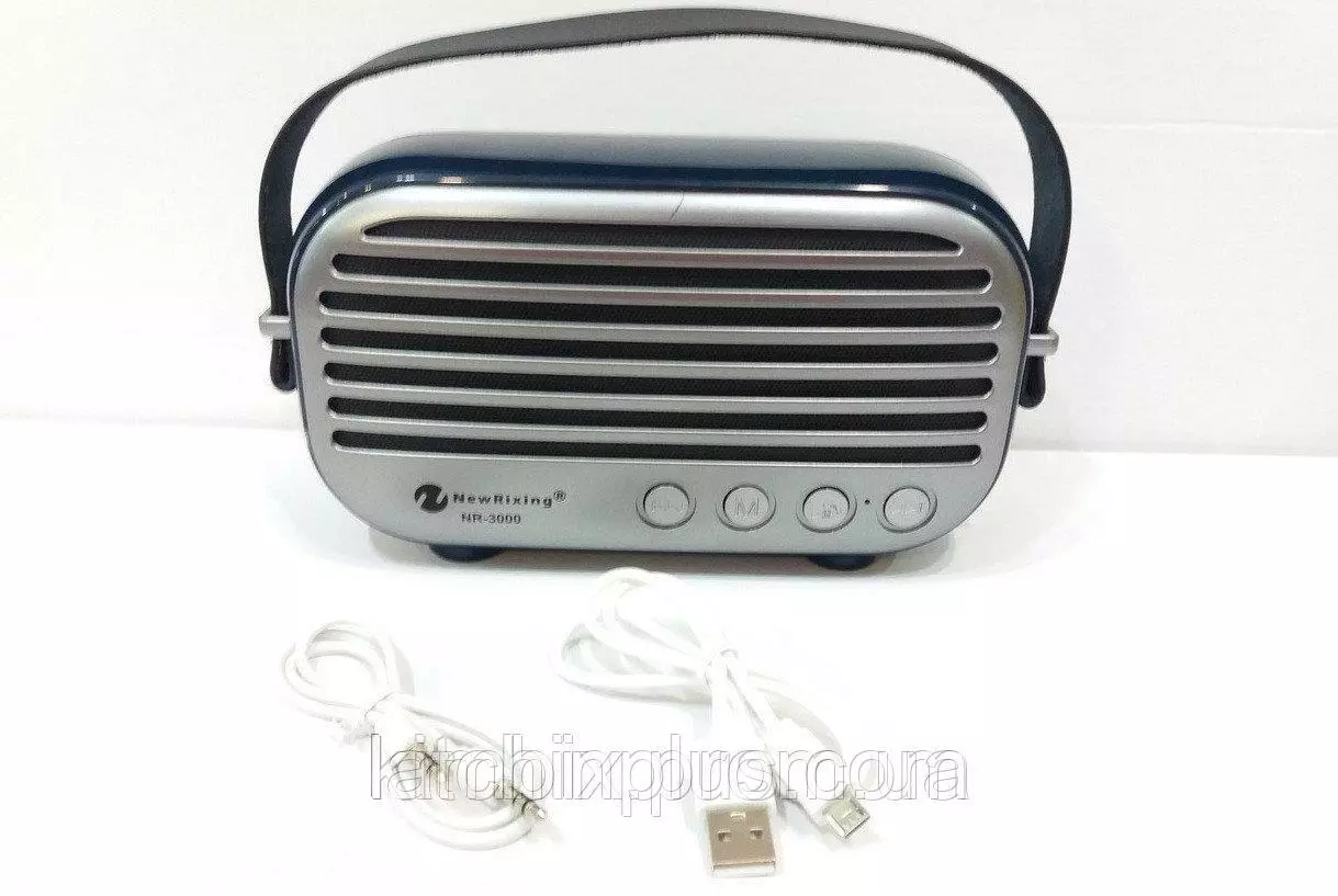 Беспроводная портативная колонка. Модель New Rixing NR-3000. Воспроизводит музыку в формате MP3/MP4 с USB/TF носителей Bluetooth FM приемник 87MHz-108MHz, Вход AUX Встроенный li-ion аккумулятор 1500 mAh .Питание USB порт Комплектация: колонка,кабели usb/mini usb, aux.