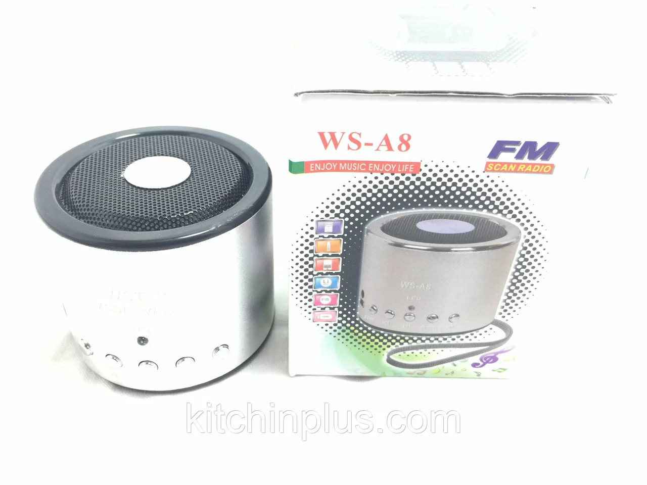 Описание Портативная колонка выполнена в металлическом корпусе, качественная сборка. В колонке имеется вход под обычную USB флешку, поддерживается до 16 гигабайт (проверено!), так же можно вставить флешку стандарта MicroSD. Так же есть выход на наушники, можно подключить наушники и использовать как портативный MP3 плеер, либо для прослушивания музыки персонально, что бы не мешать окружающим. Так же можно подключить любые компьютерные колонки любого размера. Колонка снабжена FM Тюнером, можно прослушивать любимые радиостанции, предварительно нажав кнопку Mode, после этого колонка начнет поиск и сохранение в памяти все доступные радиостанции, после сохранения вы сможете их просто переключать. Ловит радио вполне хорошо. Звук очень достойный для колонки такого размера. Звук очень громкий и качественный, на очень глубокие басы рассчитывать не приходится но и пищалкой эту колонку назвать нельзя. В комплекте с колонкой идет аккумулятор типа BL-5C от Nokia, самый распространенный, от которого колонка будет работать несколько часов. Характеристики: Выход на наушники 3.5 мм Вход USB (стандартный) Вход под карту памяти стандарта MicroSD Вход для зарядного устройства mini USB Кнопки управления звуком, переключением песен (радиостанций) Аудио форматы: MP3/WMA FM тюнер Алюминиевый корпус Комплект поставки: 1 х Колонка WS-A8 Mini Speaker 1 х USB кабель 1 х 3.7V литиевая батарея (BL-5C)