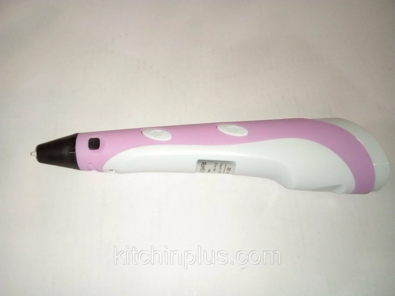 Ручка работает от сетевого адаптера. Самостоятельно отключается после 3-х минут бездействия. Температура отображается на небольшом экране, что позволяет точно настроить степень плавления. Кнопка продвижения стержня упрощает процесс замены цветов. Кстати, обжечься пластиком довольно сложно, так как он довольно быстро застывает.