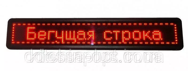 Программируемая светодиодная вывеска с бегущей строкой, для использования внутри помещений. Цвет свечения - красный. Размер 1670х400.