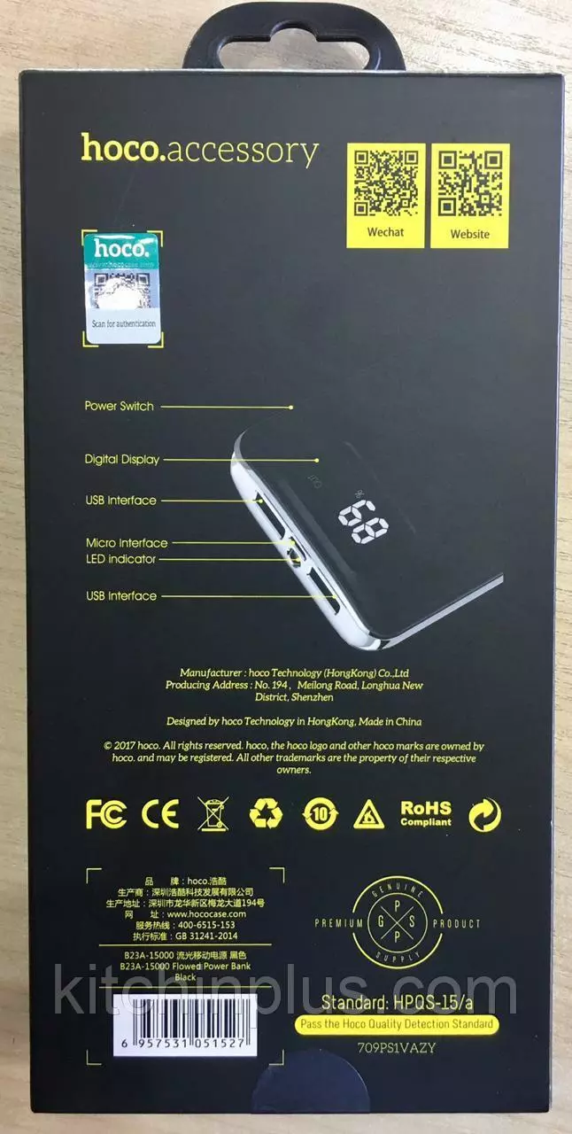 Внешний аккумулятор Hoco Fllowed Power Bank 15000