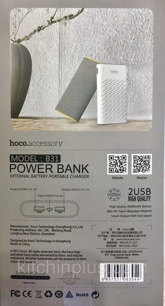 Особенность: двойной USB выход, быстрая зарядка, литий-полимерная