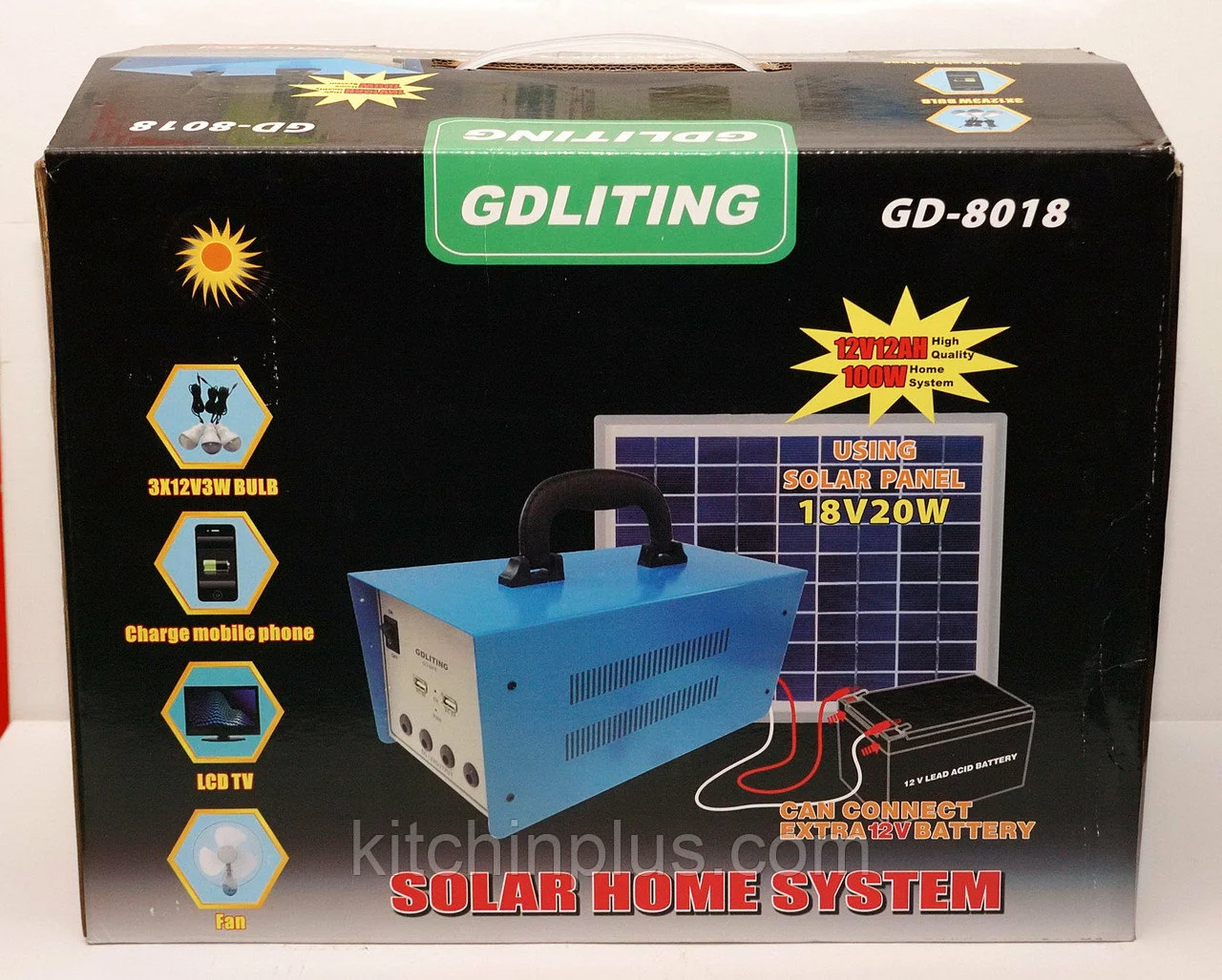Solar Home System GDliting – это портативная солнечная система для дома, дачи или для отдыха на природе, а при частом отключении электричества она будет незаменимым источником питания для мобильных телефонов, планшетов, телевизоров, ламп и других устройств.